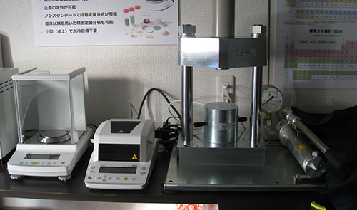 産業廃棄物中の水分を島津製作所製水分計MOC63uを用いて測定しています。
