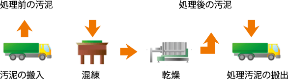 この水分を中間処理(混練・乾燥)により、含水率が概ね30%以下になるようにします。